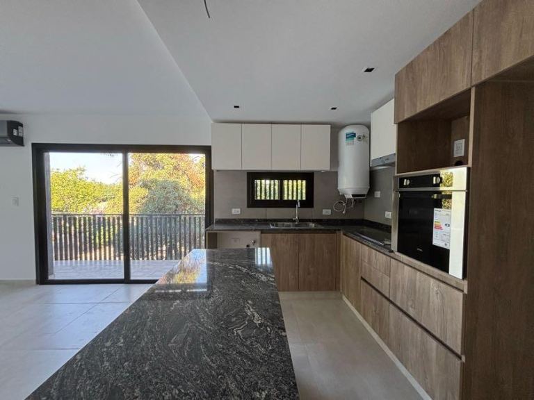 El departamento está equipado con todas las comodidades que puedas necesitar, incluyendo un anafe vitrocerámica, horno empotrado, extractor de olores y un equipo de aire frío calor inverter en el dormitorio y la sala de estar. También cuenta con un termotanque eléctrico para tu confort. La carpintería de aluminio con doble vidrio DVH y los pisos de porcelanato añaden un toque de elegancia a cada espacio.