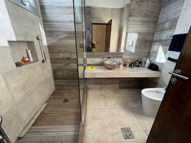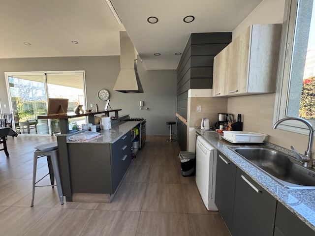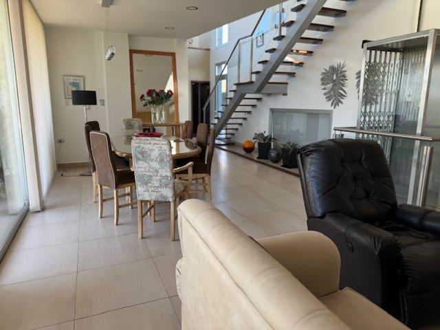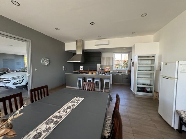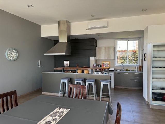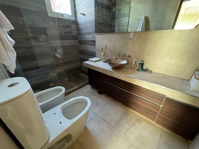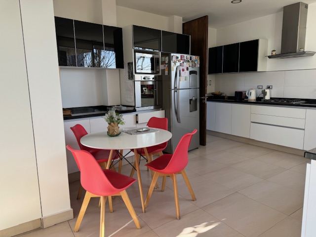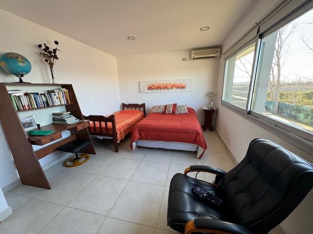 En planta baja posee: amplio living comedor, con salida a una gran galería, cocina comedor muy cómoda, escritorio, habitación principal en suite muy amplia con puertas ventanas al jardín, toilette. Además, la casa posee un gran quincho separado de la casa con todas las comodidades, amplísimo estar con cocina equipada y parrilla, lavadero independiente, baño completo con ducha.