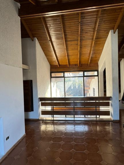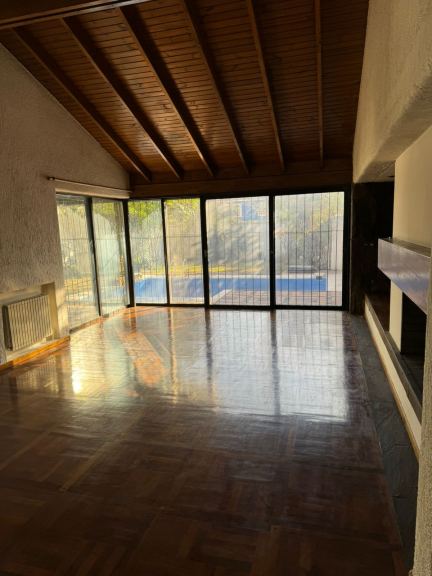 La casa se desarrolla en dos plantas. En planta baja posee un gran hall de ingreso, toilette, living principal con estufa a leña, comedor principal, estar diario, cocina amplia separada con lavadero independiente, gran jardín, riego por aspersión con piscina, galería y churrasquera.