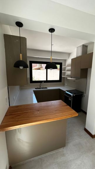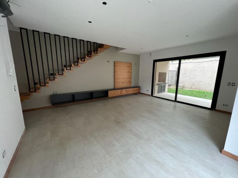 Amplio living comedor, cocina muy cómoda, toilette, jardín con galería y churrasquera. Además posee cochera doble.
