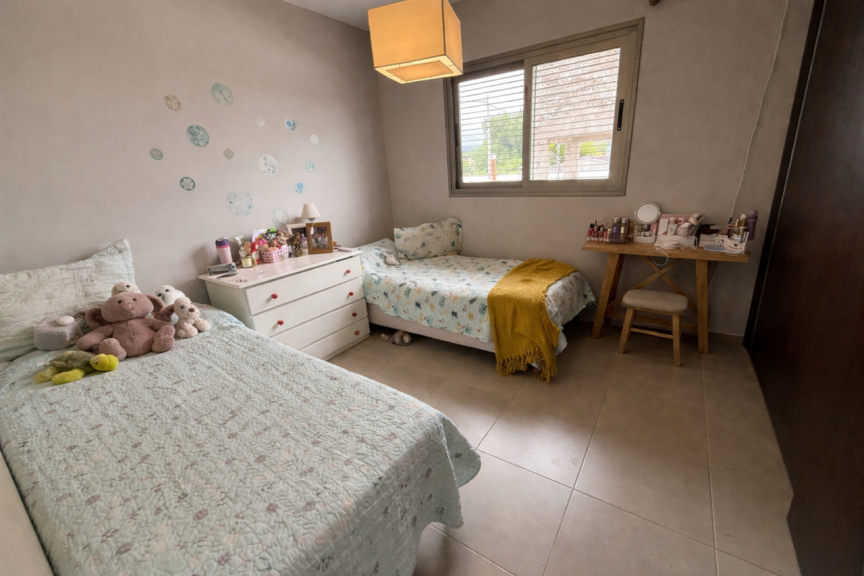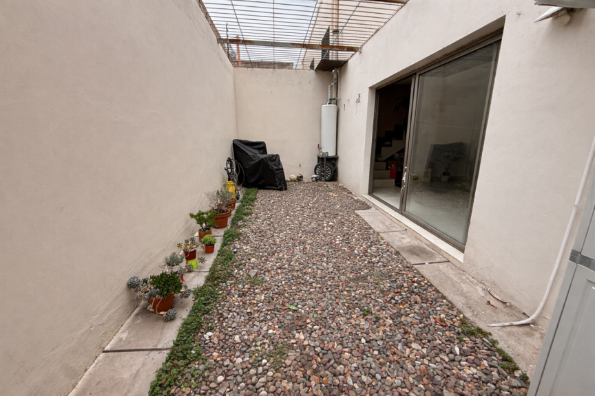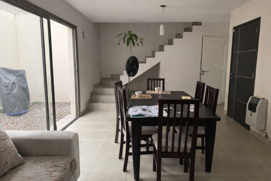 Se trata de un dúplex que se desarrolla en dos plantas. En planta baja posee un amplio living comedor, cocina separada, toilette, patio propio y cochera. En planta alta cuenta con dos dormitorios con placares y un baño completo.