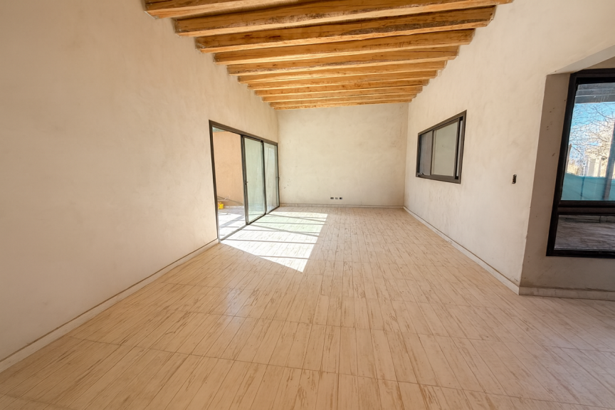 La misma se desarrolla en 1 sola planta. Cuenta con amplio living comedor, cocina semi integrada muy amplia con amoblamientos de bajo mesada y alacena, barra de desayuno, lavadero separado con patio de servicio, 1 toilette, armario de guardado, 2 amplios dormitorios con placares, 1 baño completo. Cochera doble cubierta en paralelo.