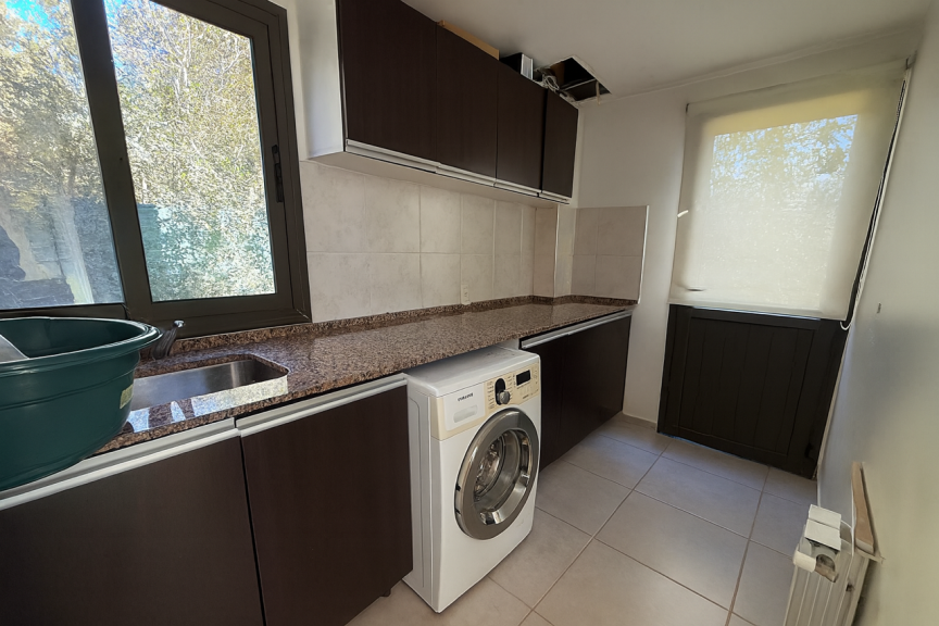 PB: hall de entrada, gran living comedor con salida a la galería, cocina muy amplia y cómoda isla, completamente equipada con alacenas y bajo mesadas, lavadero separado con entrada desde el patio de servicio, un amplísimo y cómodo playroom con churrasquera, cocina y baño. Además, la casa cuenta con galería, un gran jardín totalmente parquizado con riego por aspersión, lindísima piscina con solárium. La casa cuenta con cochera doble con portón automático.