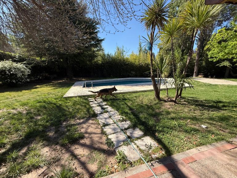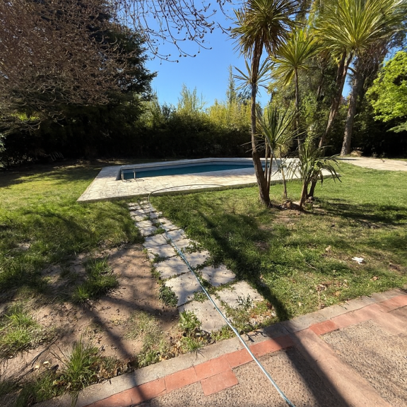 La propiedad cuenta con un hermoso jardín y piscina de material de 38 m2. con bomba. Además, posee riego por aspersión.