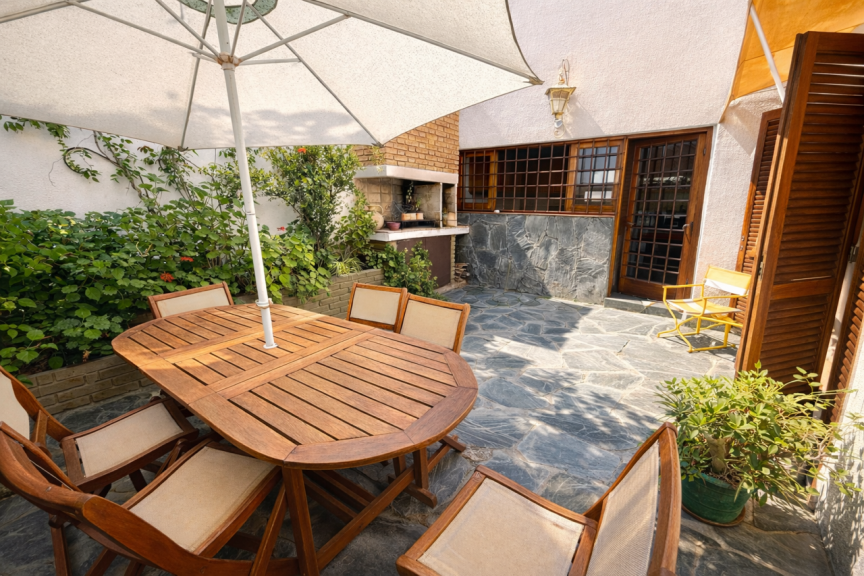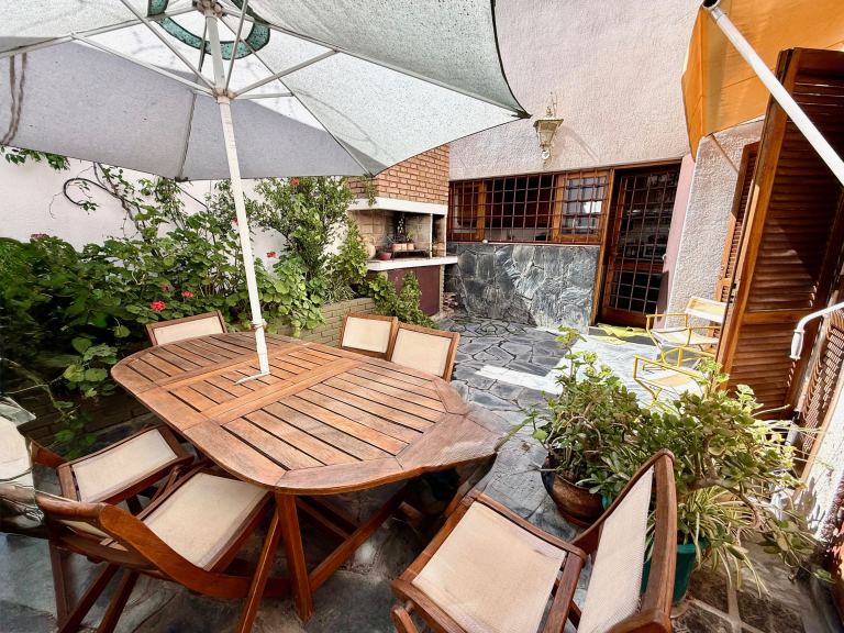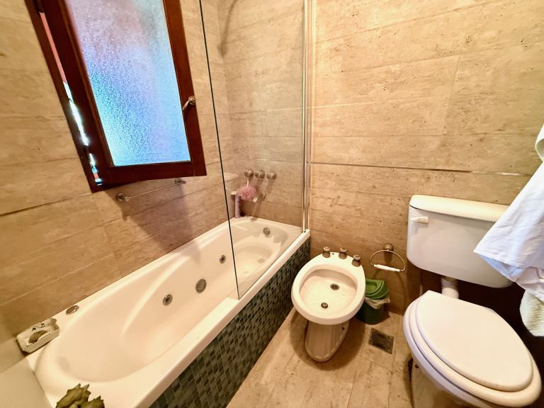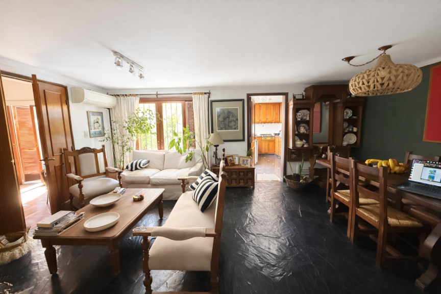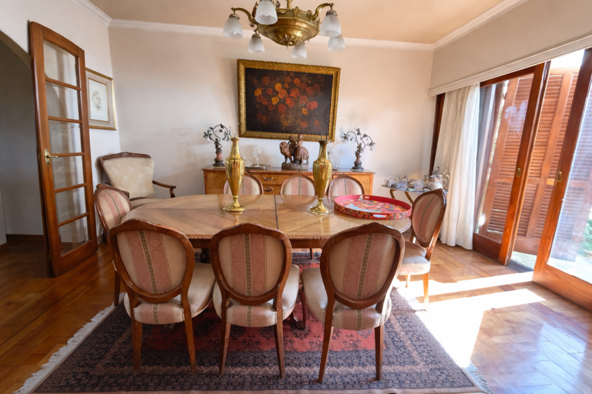 Planta baja: posee un amplio living con comedor principal separado, gran estar comedor diario, cocina separada, toilette, escritorio pequeño y patio de tamaño mediano, embaldosado, con churrasquera.