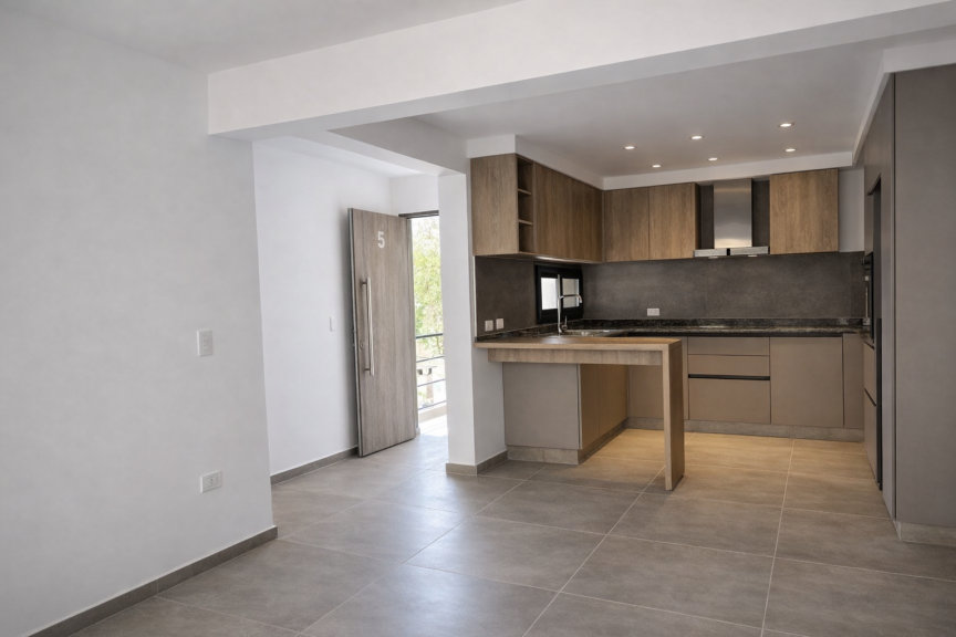 Los departamentos son a ESTRENAR. Cuentan con amplios espacios que incluyen un luminoso living comedor, cocina con isla y lavadero, 2 dormitorios espaciosos con placares, uno con vestidor, balcón terraza, 2 baños completos y una cochera techada con portón automático.
